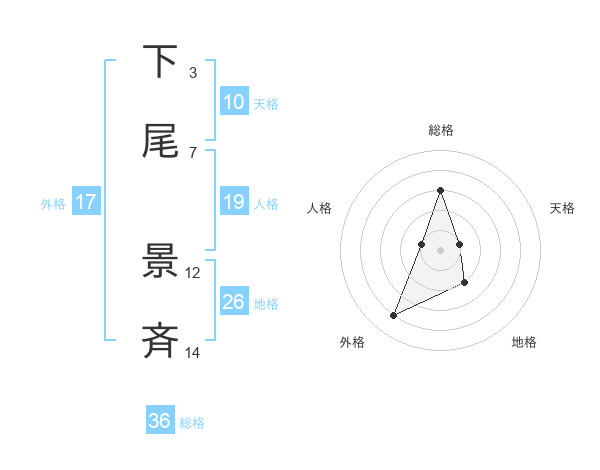 下尾 景斉さんを姓名の画数から五運を鑑定