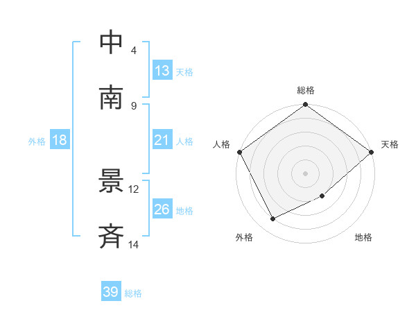 中南 景斉さんの総格は39画の5点!