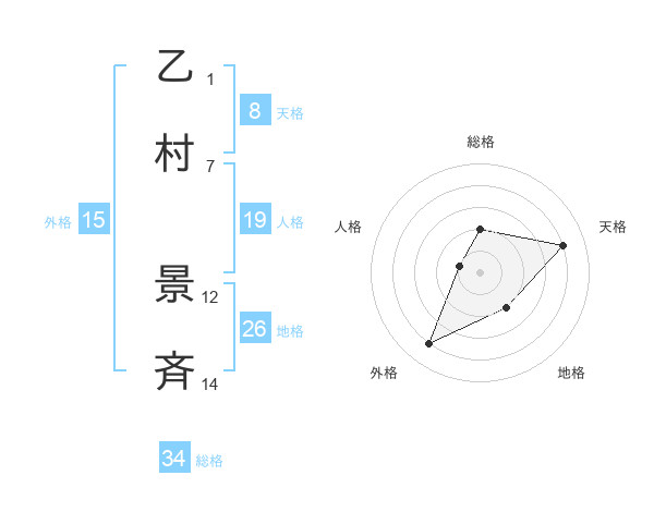 乙村 景斉さんを姓名の画数から五運を鑑定