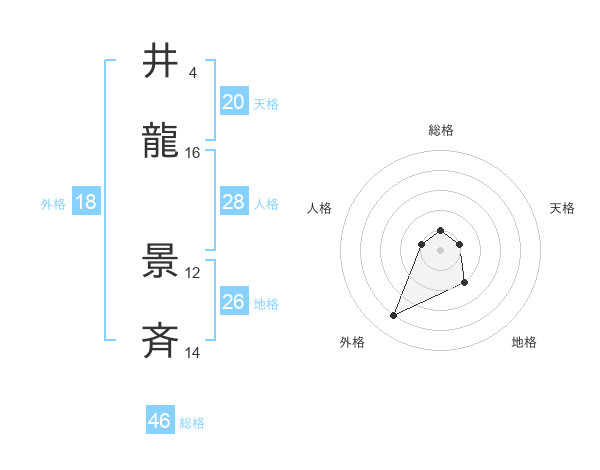 井龍 景斉さんの天格は20画の1点!