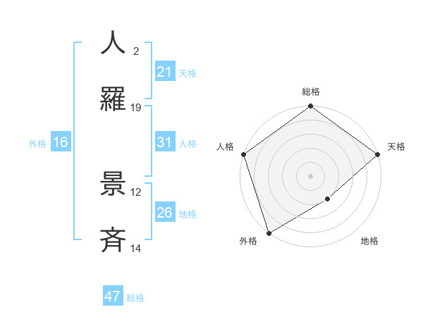 人羅 景斉さんを姓名の画数から五運を鑑定