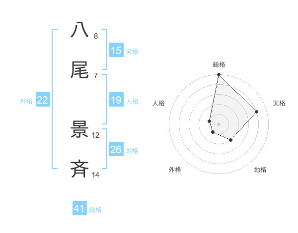 八尾 景斉さんの総格は41画の5点!