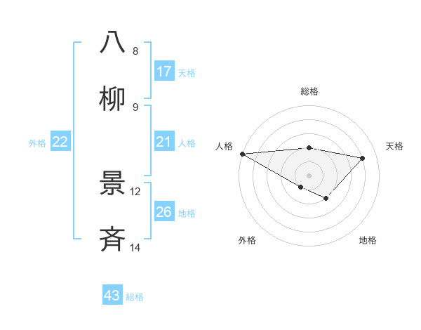 八柳 景斉さんを姓名の画数から五運を鑑定