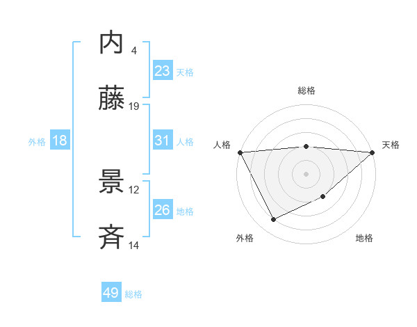 内藤 景斉さんの総格は49画の2点!