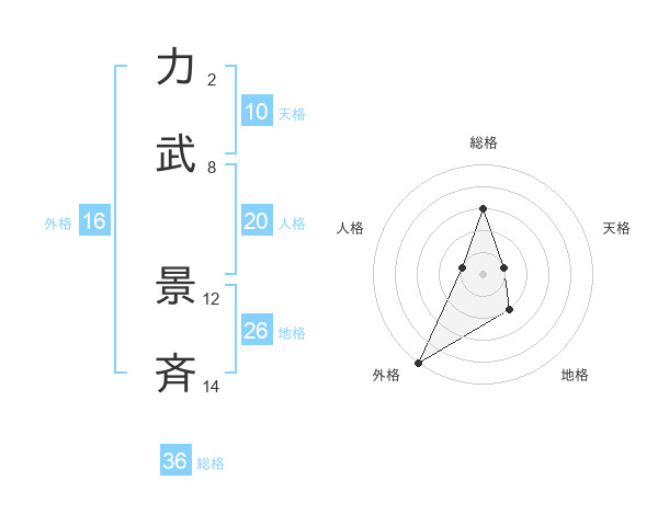 力武 景斉さんを姓名の画数から五運を鑑定
