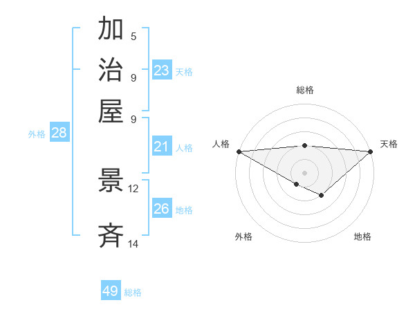加治屋 景斉さんを姓名の画数から五運を鑑定