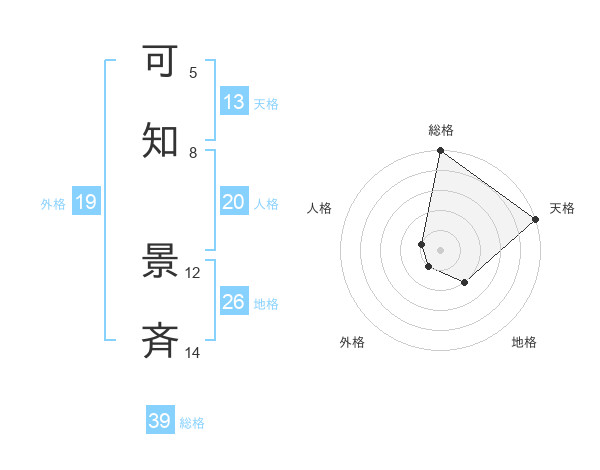 可知 景斉さんの天格は13画の5点!