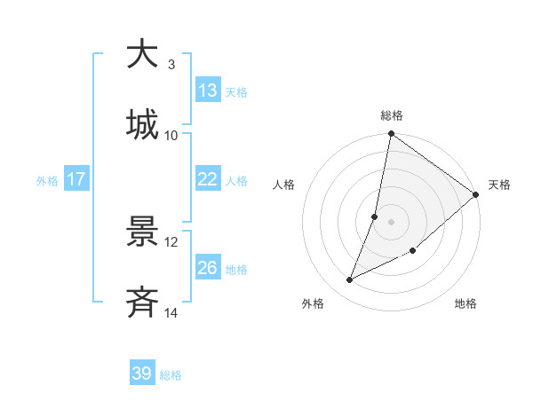 大城 景斉さんの総格は39画の5点!