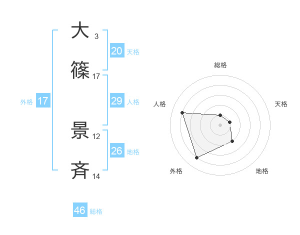 大篠 景斉さんを姓名の画数から五運を鑑定