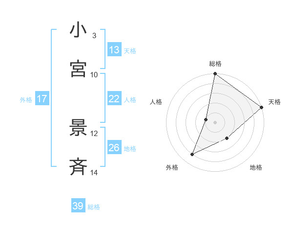 小宮 景斉さんを姓名の画数から五運を鑑定