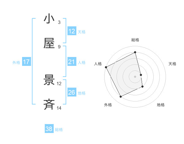小屋 景斉さんを姓名の画数から五運を鑑定