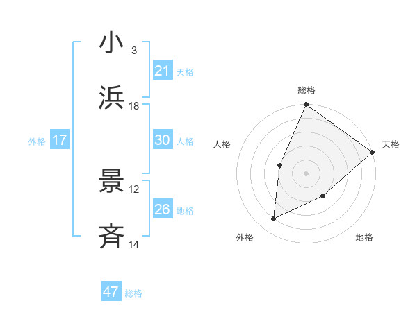 小浜 景斉さんの総格は47画の5点!