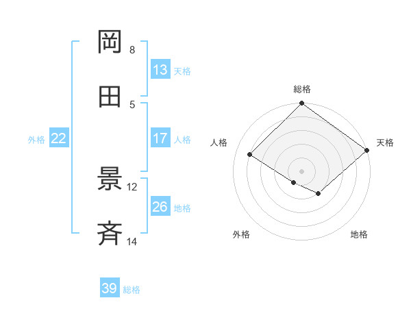 岡田 景斉さんの総格は39画の5点!