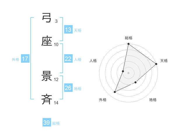 弓座 景斉さんを姓名の画数から五運を鑑定