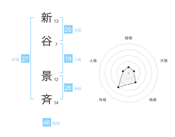新谷 景斉さんを姓名の画数から五運を鑑定