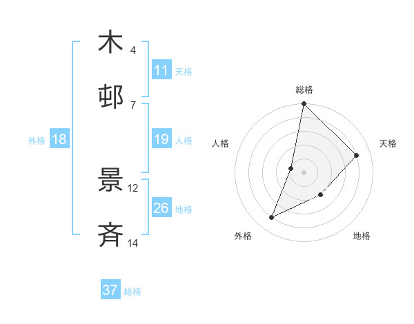 木邨 景斉さんの総格は37画の5点!