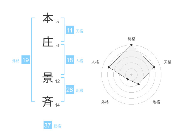 本庄 景斉さんの総格は37画の5点!