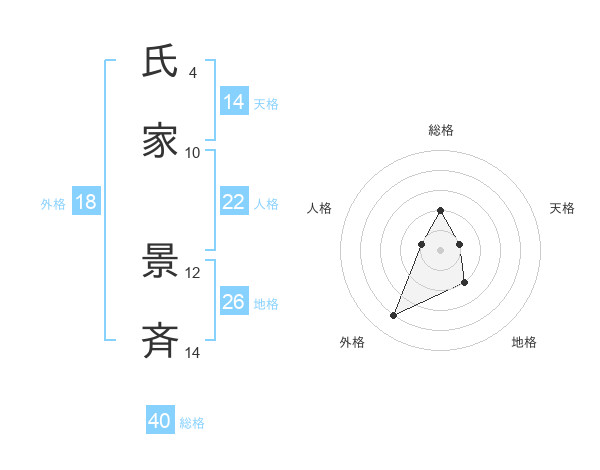 氏家 景斉さんを姓名の画数から五運を鑑定