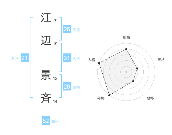 江辺 景斉さんの総格は52画の4点!