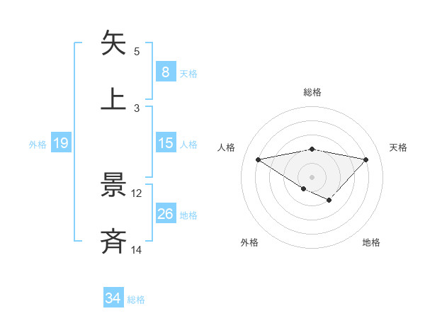 矢上 景斉さんを姓名の画数から五運を鑑定