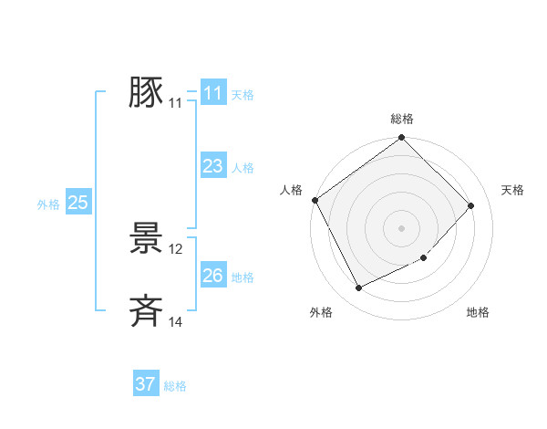 豚 景斉さんの総格は37画の5点!