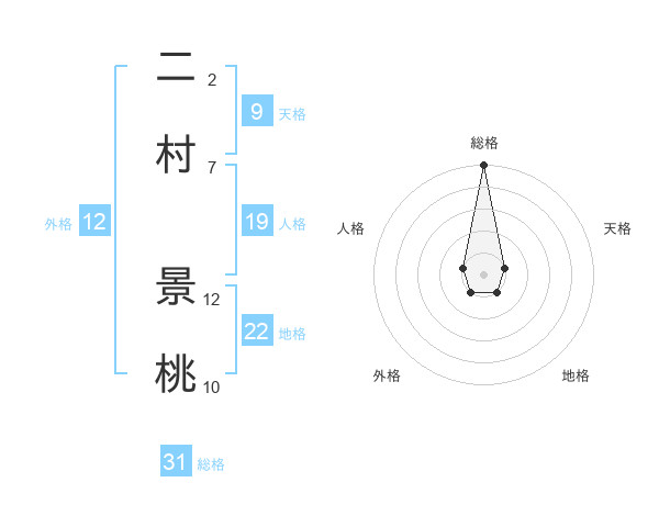二村 景桃さんの総格は31画の5点!