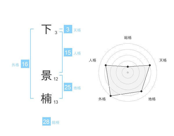 下 景楠さんの総格は28画の1点!