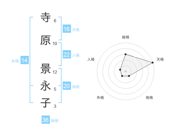 寺原 景永子さんの天格は16画の5点!