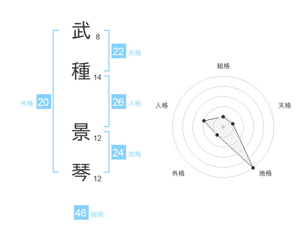 武種 景琴さんの総格は46画の1点!