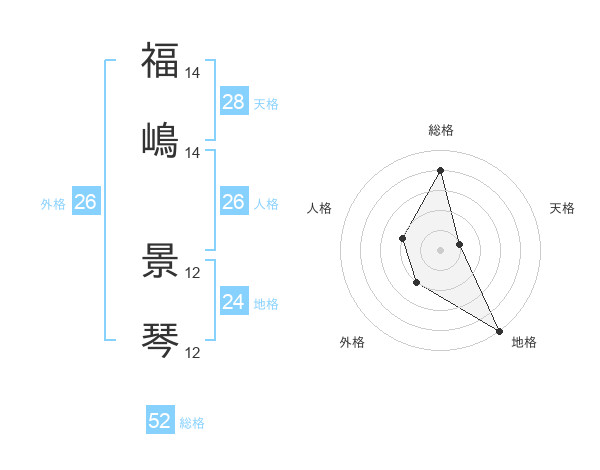 福嶋 景琴さんを姓名の画数から五運を鑑定