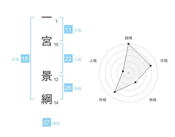 一宮 景綱さんを姓名の画数から五運を鑑定