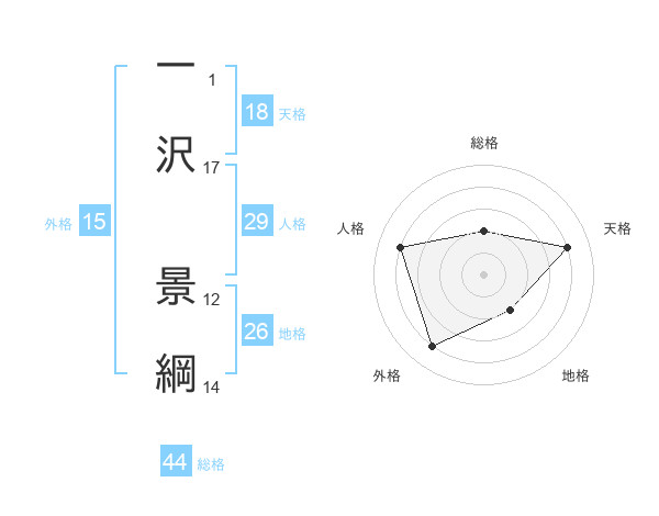 一沢 景綱さんを姓名の画数から五運を鑑定