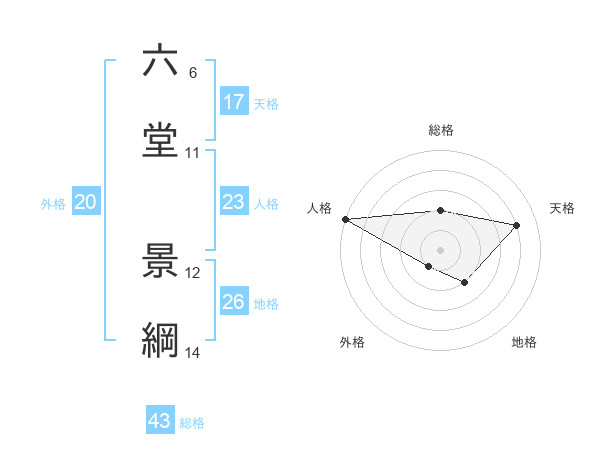 六堂 景綱さんを姓名の画数から五運を鑑定