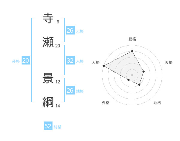 寺瀬 景綱さんの総格は52画の4点!