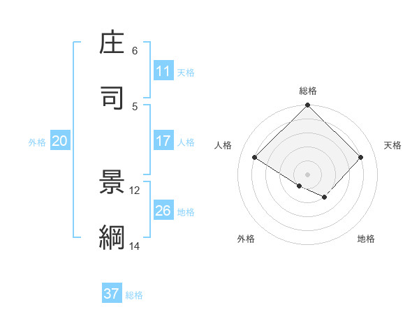 庄司 景綱さんを姓名の画数から五運を鑑定
