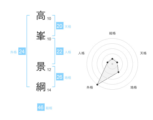 高峯 景綱さんを姓名の画数から五運を鑑定
