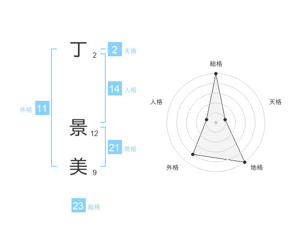 丁 景美さんの総格は23画の5点!