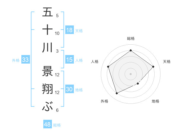 五十川 景翔ぶさんの総格は48画の4点!