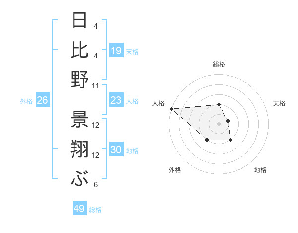 日比野 景翔ぶさんを姓名の画数から五運を鑑定