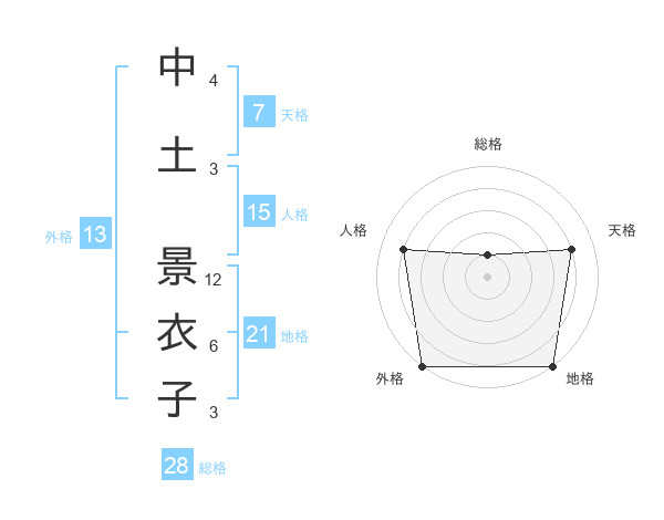 中土 景衣子さんを姓名の画数から五運を鑑定