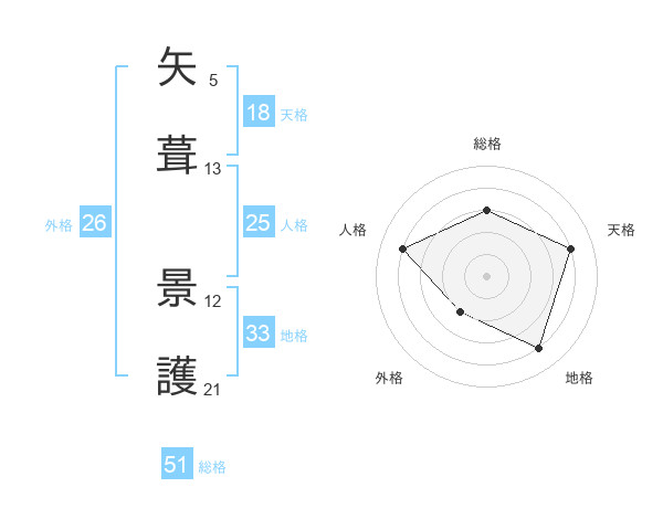 矢葺 景護さんを姓名の画数から五運を鑑定