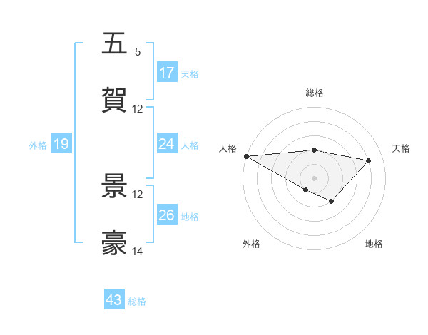 五賀 景豪さんを姓名の画数から五運を鑑定