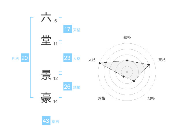 六堂 景豪さんを姓名の画数から五運を鑑定