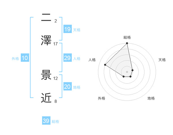 二澤 景近さんの総格は39画の5点!