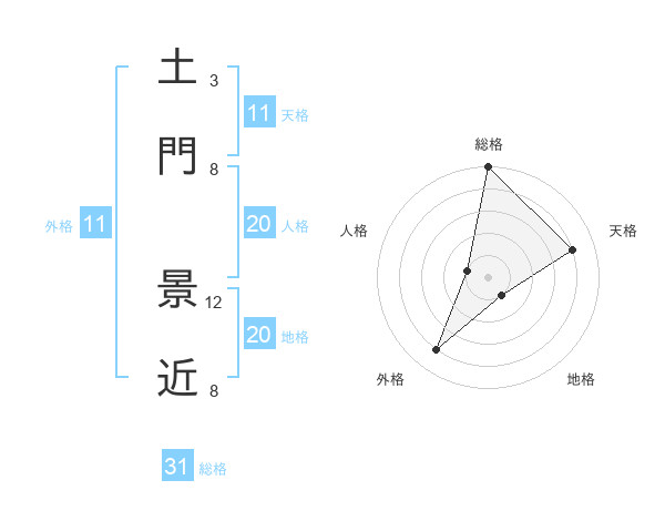 土門 景近さんの総格は31画の5点!