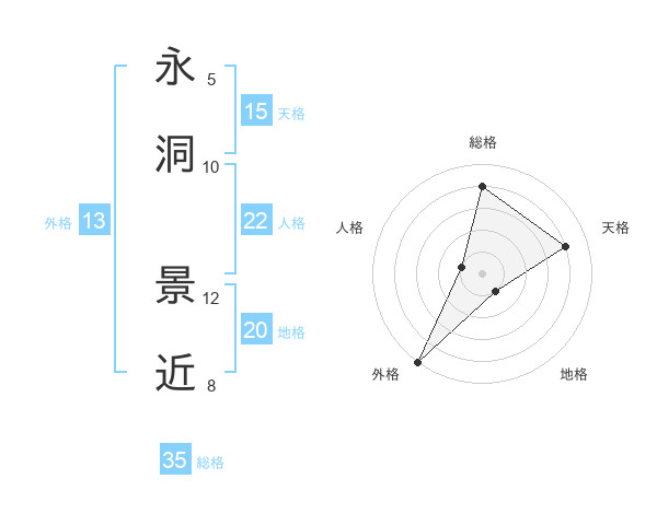 永洞 景近さんの天格は15画の4点!
