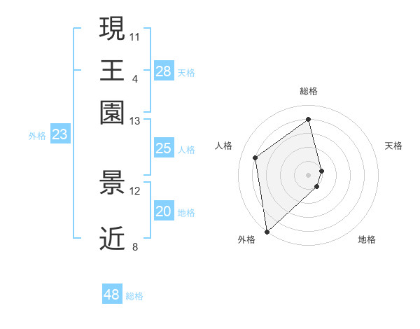 現王園 景近さんの外格は23画の5点!