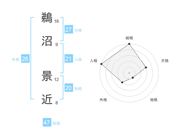 鵜沼 景近さんの総格は47画の5点!