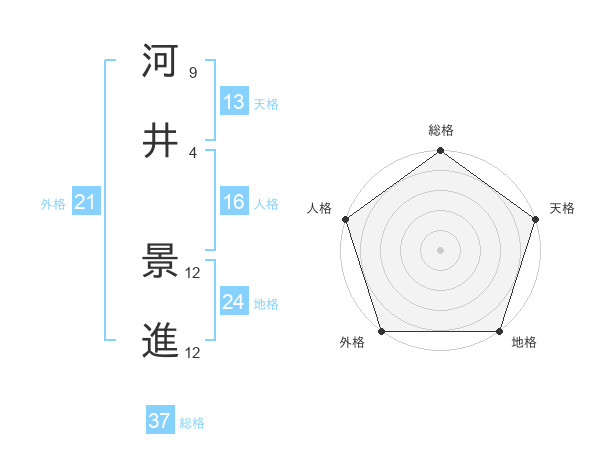 河井 景進さんの天格は13画の5点!