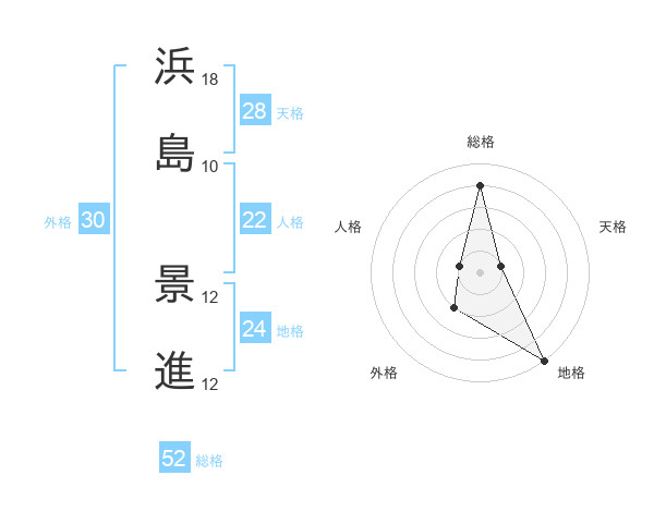 浜島 景進さんの総格は52画の4点!